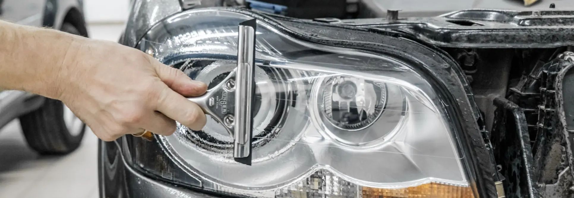 ВНИМАНИЕ! Перед началом работ необходимо убедиться, что у фар нет керамического покрытия. Если оно нанесено, оклеить фару пленкой не получится из-за отсутствия адгезии.